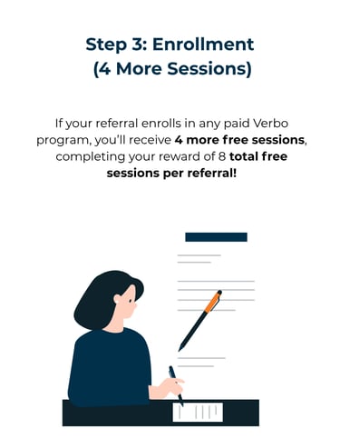 4 sessions when your referral officially enrolls in a paid Verbo program.