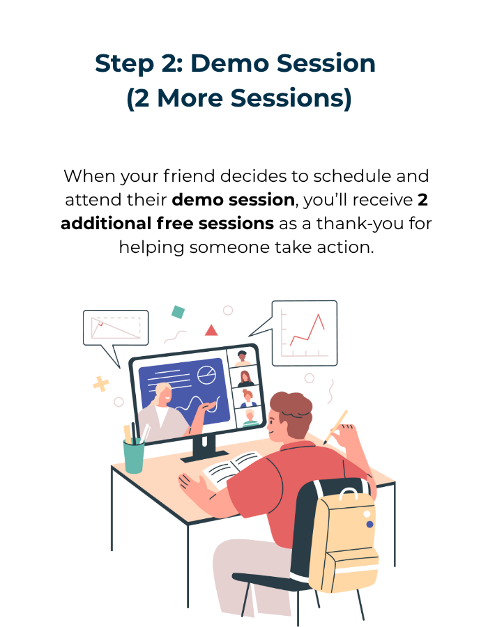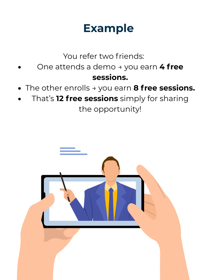 You can earn up to 8 free sessions per referral, distributed as follows: